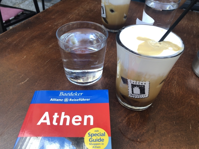 Dort haben wir uns einen Freddo Cappuccino gegönnt, einen eisgekühlten Kaffee aus frischem Cappuccino mit aufgeschäumter Milch. Diese griechische Kaffeespezialität muss man, gesüßt mit etwas Zucker, auf jeden Fall einmal probieren, wenn man in Athen ist. Er schmeckt herrlich lecker und erfrischend.